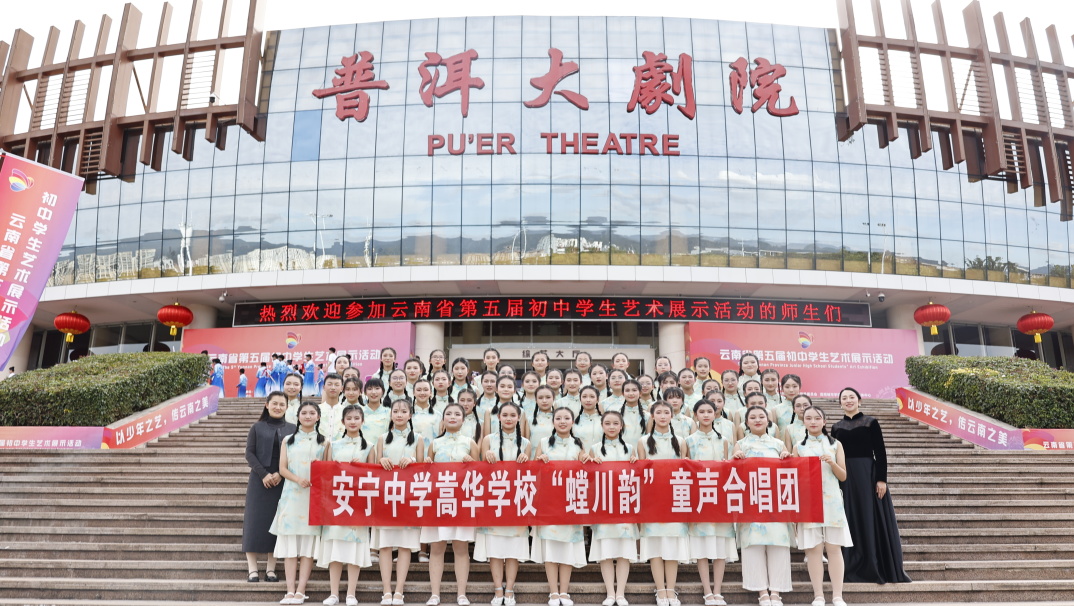 2025年12月11日,云南省第五届初中学生艺术展示活动在普洱大剧院隆重举行。安宁中学嵩华学校“螳川韵”童声合唱团作为昆明市唯一一支入围省级展演的专项合唱团参与本次活动。