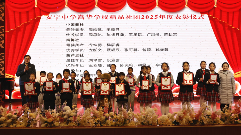 12月23日,安宁中学嵩华学校在报告厅举行精品社团专场演出暨课后服务成果展示活动。在过去一年,各社团师生以热爱为舟,以勤勉为桨,各级赛事舞台上深耕不辍,收获了累累硕果。此次展演,既是对过去一年社团活动与课后服务成果的全面回顾,更是一场青春风采的集中绽放。
